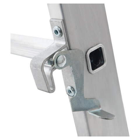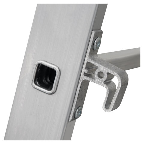 Стойки и ступени изготовлены из прессованного профиля. Многократная развальцовка в соединении ступеней со стойками обеспечивает высокую прочность и долговечность. Лестница имеет рифлёные ступени для безопасного подъёма и спуска.