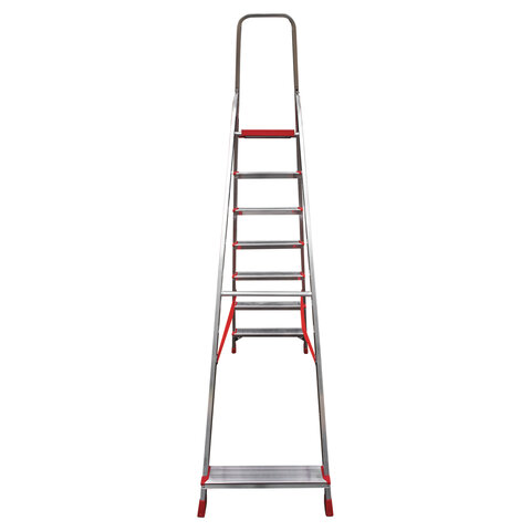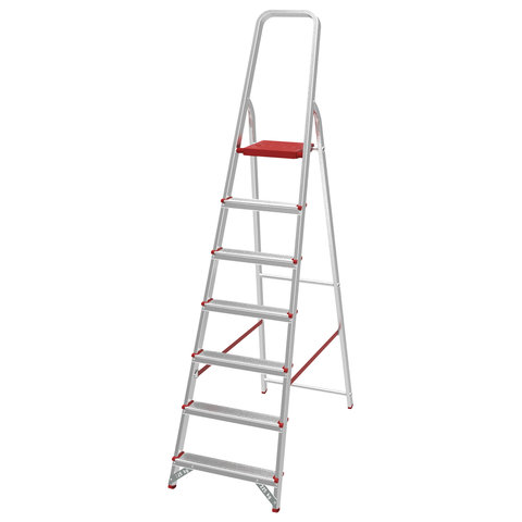 Стремянка алюминиевая 7 стандартных ступеней 9 см, площадка 1,5 м, нагрузка 225 кг, вес 7 кг, НОВАЯ ВЫСОТА, 3110107