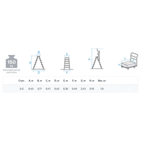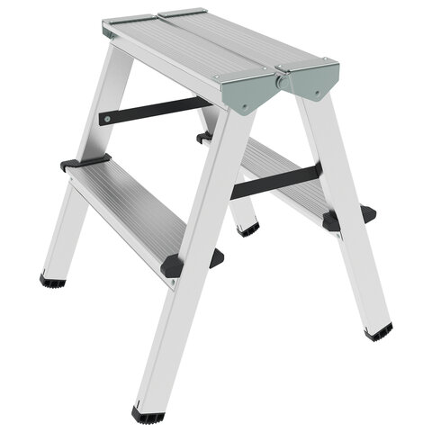 Стремянка алюминиевая двухсторонняя 2х2 ступени, высота площадки 0,43 м, до 150 кг, вес 1,8 кг, НОВАЯ ВЫСОТА, 1120202