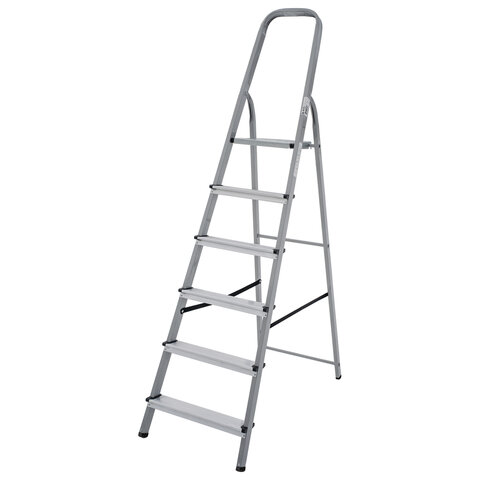 Стремянка сталь / алюминий 6 ступени, высота площадки 1,25м, дуга 0,6м, площадка 26х26см, нагрузка 150кг, вес 7кг НОВАЯ ВЫСОТА, 1130106