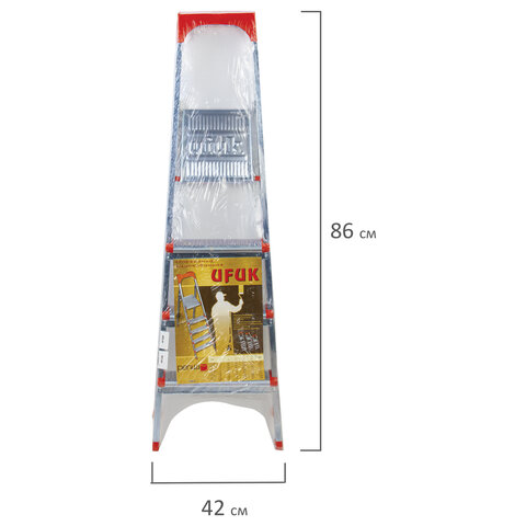Стремянка стальная 4 ступени, верхняя площадка 86 см, до 150 кг, облегченная, вес 6,3 кг, UFUK, ТУ 18/KRM404