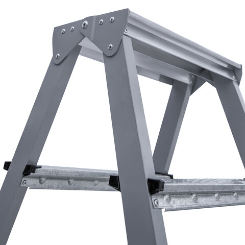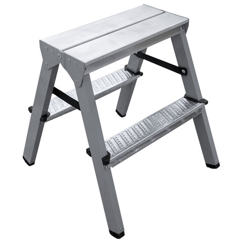 Стремянка стальная двухсторонняя 2х2 ступени, высота площадки 0,44м, алюминиевая площадка 35х16см, до 150кг, вес 2,8кг НОВАЯ ВЫСОТА, 1160202