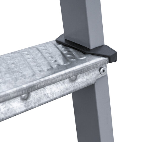 Стремянка имеет повышенную прочность и надёжность при небольшом весе изделия. Обеспечивает высокий уровень комфорта.