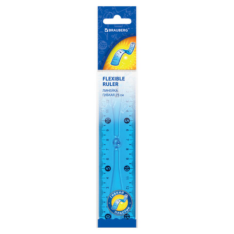 Линейка 15 см гибкая BRAUBERG "FLEX", пластиковая, ассорти, европодвес, 210673