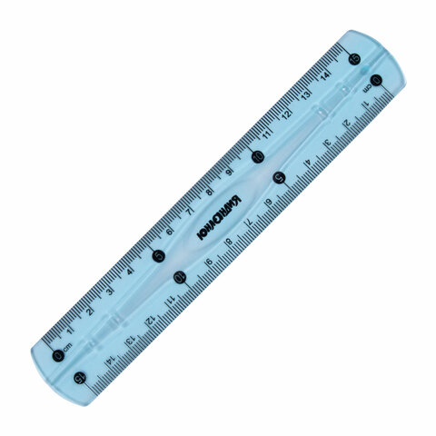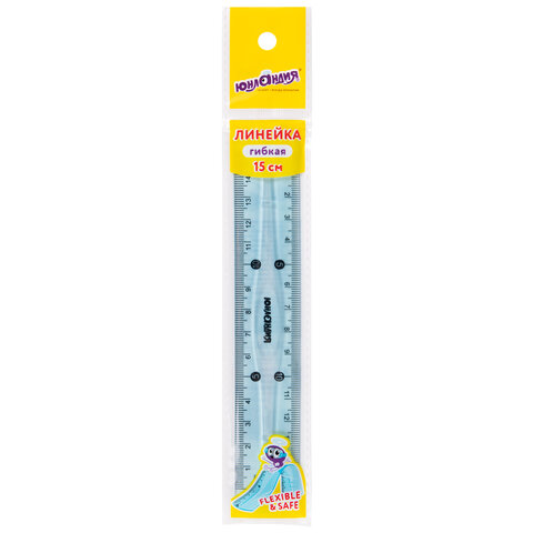 Линейка 15 см гибкая ЮНЛАНДИЯ "FLEX", пластиковая, тонированная, голубая, 210757