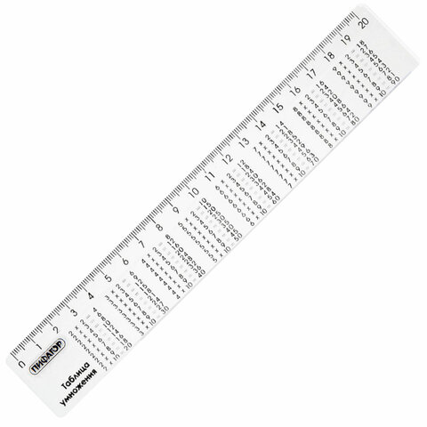 Линейка пластик 20 см, ПИФАГОР, справочная, таблица умножения, 210616