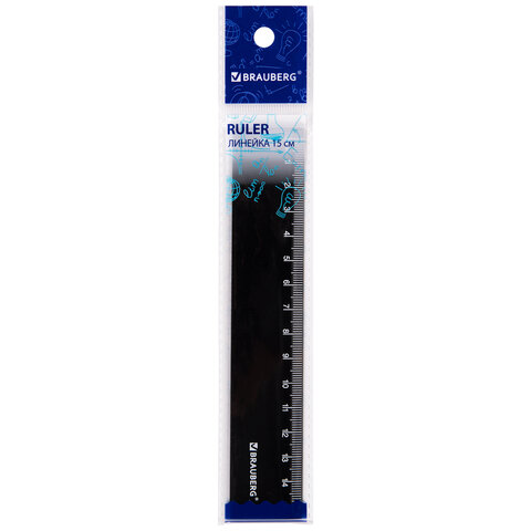 Линейка пластиковая 15 см, BRAUBERG, черная, пакет, 210774