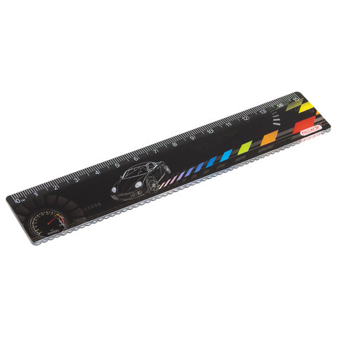 Линейка пластиковая 15 см, ПИФАГОР "Авто", цветная печать, с волнистым краем, европодвес, 210634