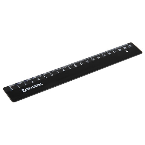 Линейка пластиковая 20 см, BRAUBERG, черная, 210607