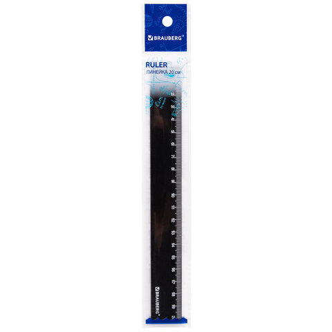 Линейка пластиковая 20 см, BRAUBERG, черная, пакет, 210775