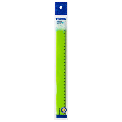 Линейка пластиковая 30 см BRAUBERG "NEON", ассорти, пакет, 210751
