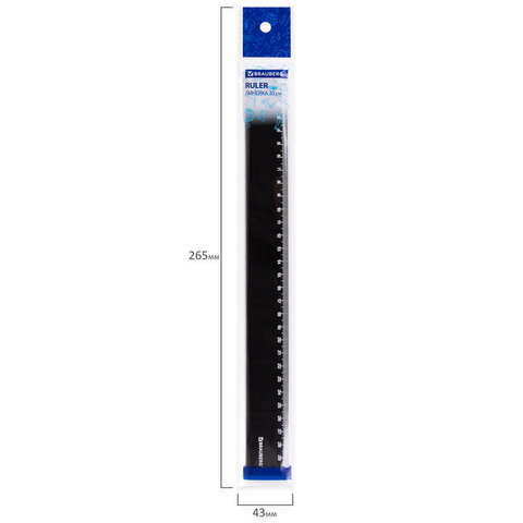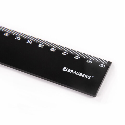 Линейка пластиковая 30 см, BRAUBERG, черная, пакет, 210776