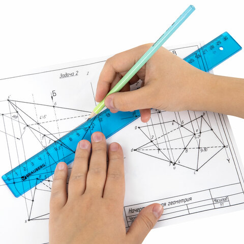 Линейка BRAUBERG предназначена для чертёжных и измерительных работ.