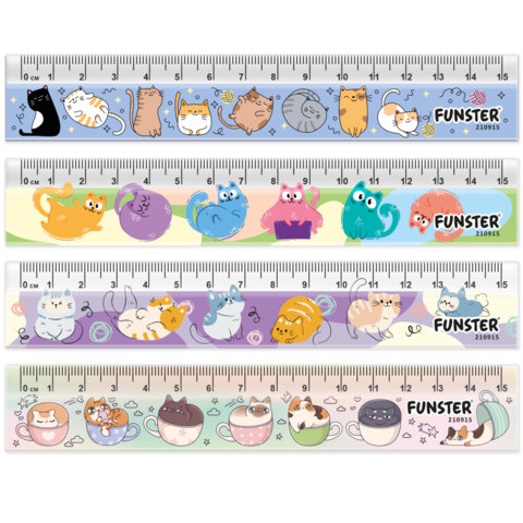 Линейки пластиковые 15 см FUNSTER, "КОТЫ", НАБОР 4 штуки, пенал, 210915