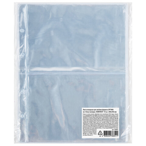 Листы-вкладыши для альбома "OPTIMA" на 2 боны (купюры), КОМПЛЕКТ 10 шт., 200х250 мм, ПВХ, STAFF, 238081