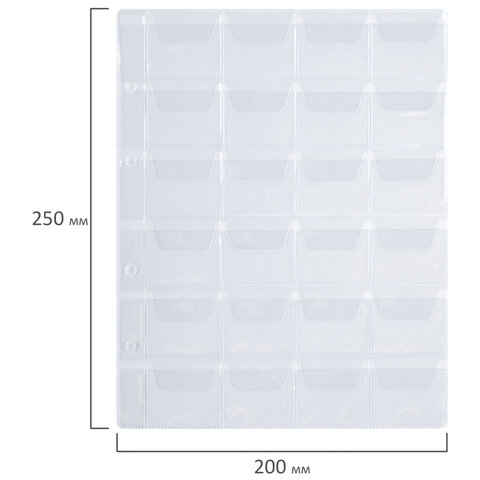 Листы-вкладыши для альбома "OPTIMA" на 24 монеты d до 38 мм, КОМПЛЕКТ 10 шт., 200х250 мм, ПВХ, STAFF, 238084