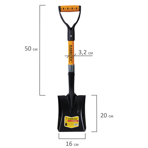 Лопата для авто и туризма, совковая 16х20 см, ОБЩАЯ ДЛИНА 70 см, черенок стекловолокно, V-ручка, RABBITEX (РАББИТЕКС) "FIBERGLASS", 700485