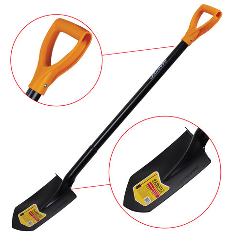 Лопата штыковая стальная 19х27 см, ОБЩАЯ ДЛИНА 115 см, черенок сталь, V-ручка, RABBITEX (РАББИТЕКС) "STRONG METAL", 700476