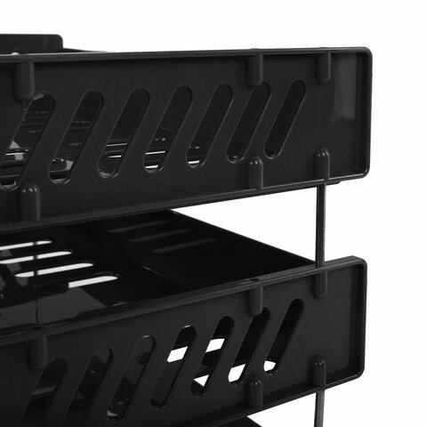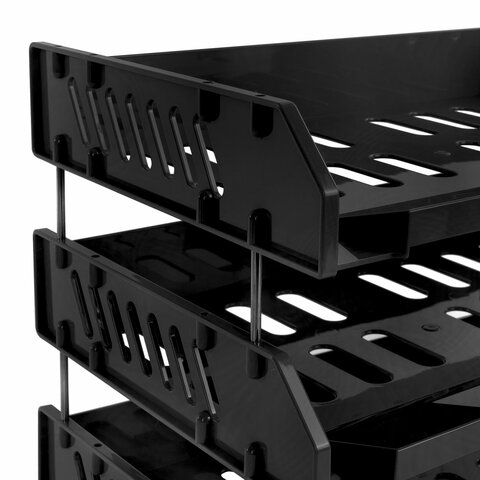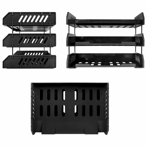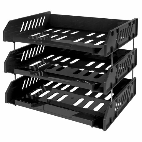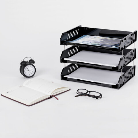 Лотки горизонтальные для бумаг, КОМПЛЕКТ 3 шт., 335х232х246 мм, черный, BRAUBERG EXPERT, 238107