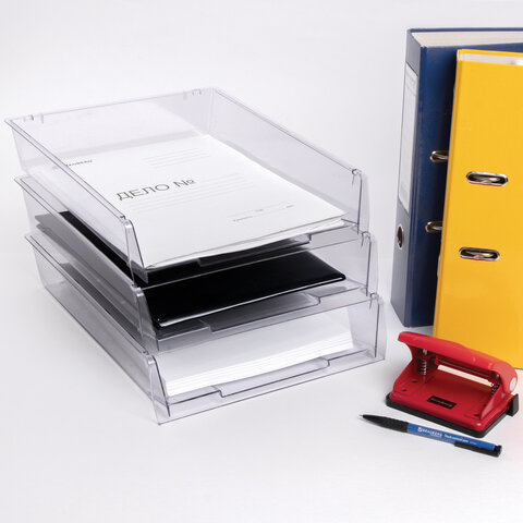 Лотки горизонтальные для бумаг, КОМПЛЕКТ 3 шт., 340х270х70 мм, прозрачный, BRAUBERG "Office", 237258