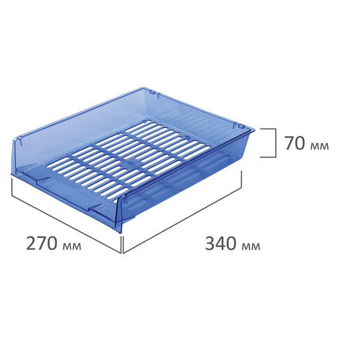 Лотки горизонтальные для бумаг, КОМПЛЕКТ 3 шт., 340х270х70 мм, тонированный синий, BRAUBERG "Office", 237259