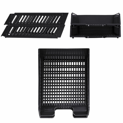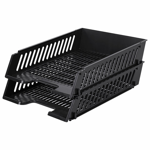 Лотки горизонтальные для бумаг, НАБОР 2 шт. (358х272х138 мм), сетчатые, черные, BRAUBERG-MAXI, 231360