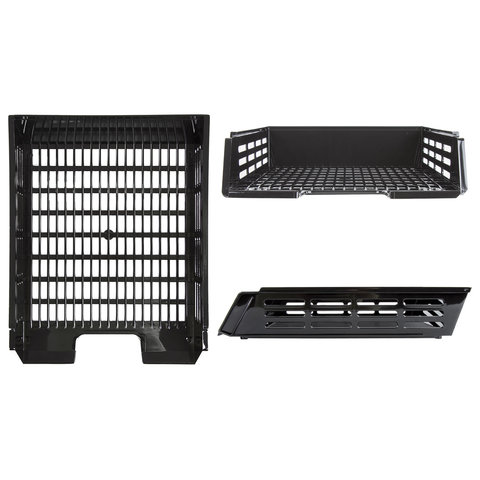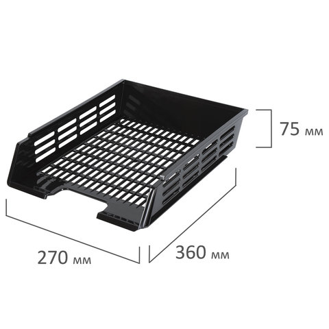Лоток горизонтальный для бумаг BRAUBERG "Basic", А4 (360х270х75 мм), с пазами, сетчатый, черный, 237011