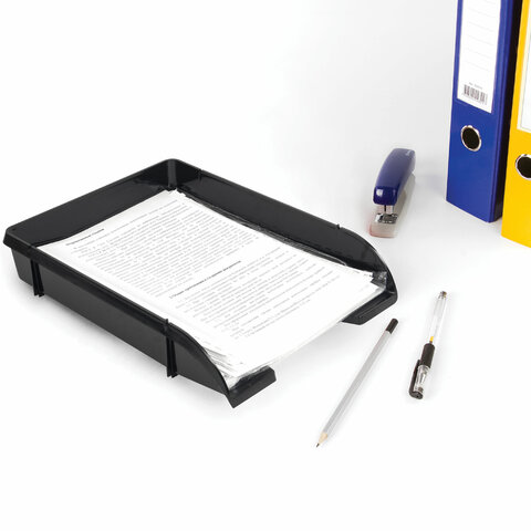 Лоток горизонтальный для бумаг BRAUBERG "Classic", 330х255х62 мм, черный, 237285