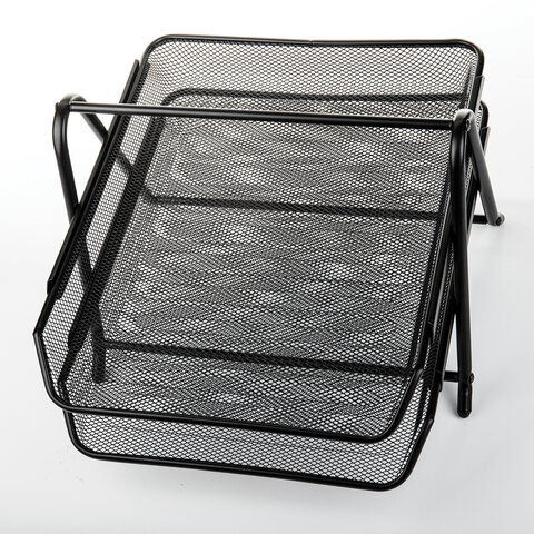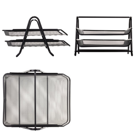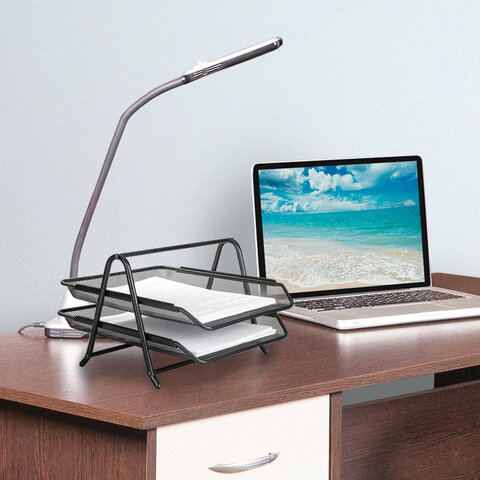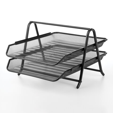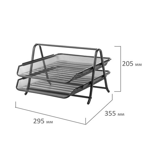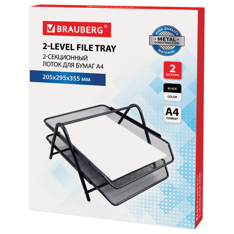 Лоток горизонтальный металлический для бумаг, 2 секции, BRAUBERG "Germanium", А4 (355х205х295 мм), черный, 231950
