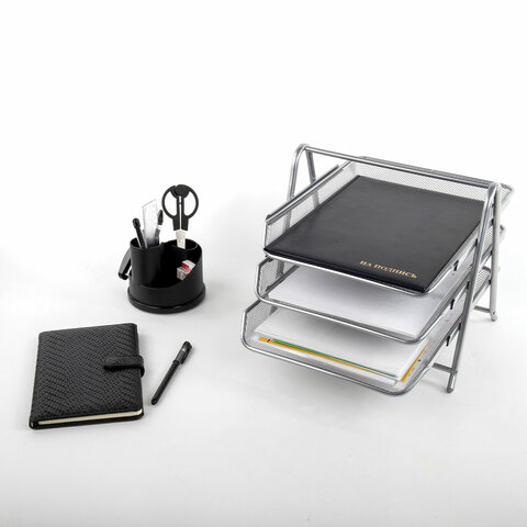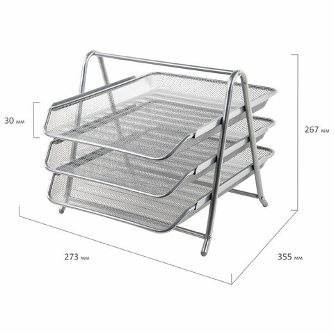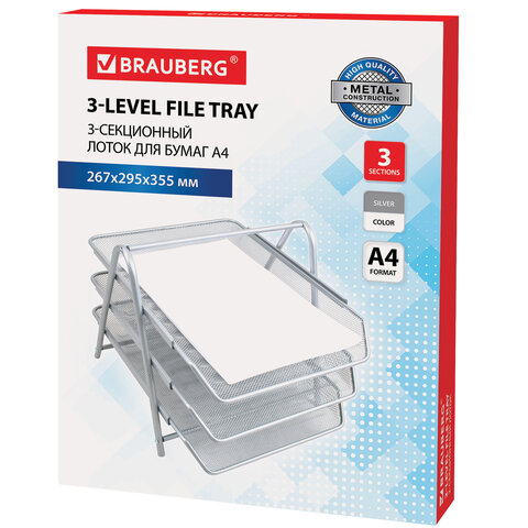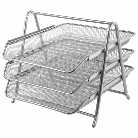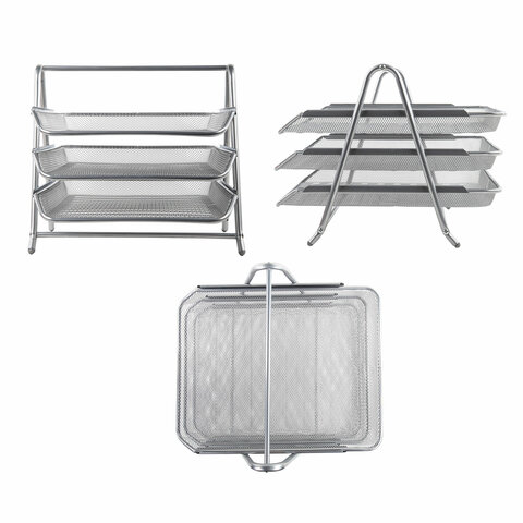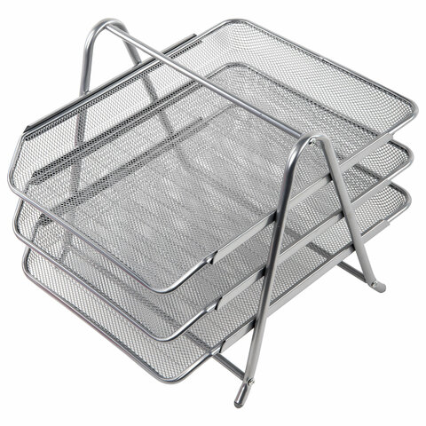 Лоток горизонтальный металлический для бумаг, 3 секции, BRAUBERG "Germanium", А4 (267х355х295 мм), серебристый, 231953