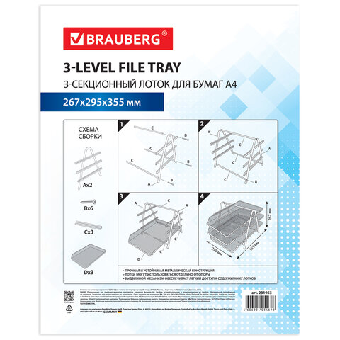 Горизонтальный трехсекционный лоток для бумаг BRAUBERG "Germanium" компактно сохранит на рабочем столе документацию, проспекты, каталоги и другую продукцию формата А4.