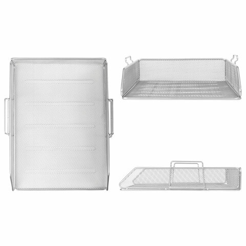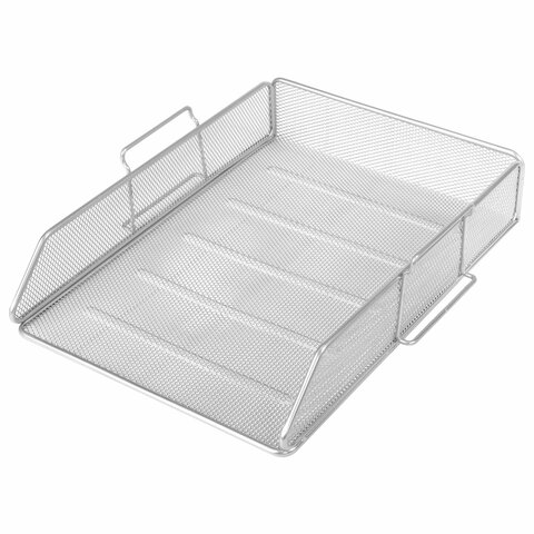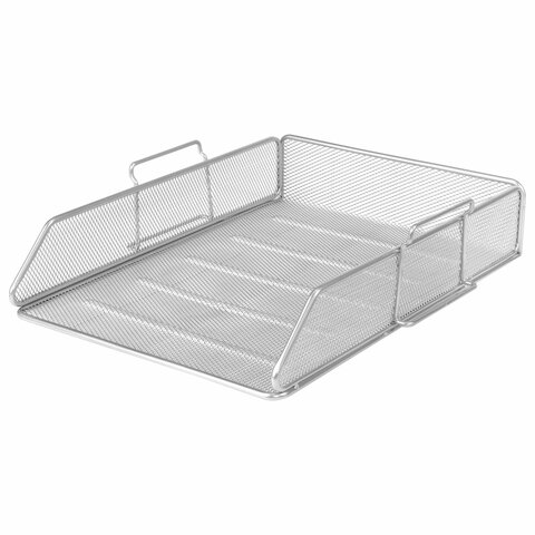 Лоток горизонтальный металлический для бумаг BRAUBERG "Germanium", А4 (260х337х77 мм), серебристый, 231955