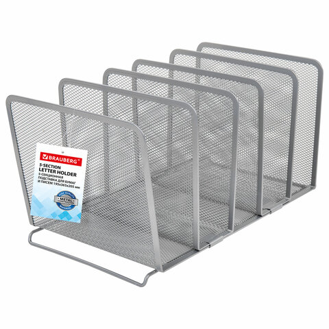 Подставка для сортировки писем и бумаг 5-ти секционная BRAUBERG "Germanium", 195х365х205 мм, серебро, 237969