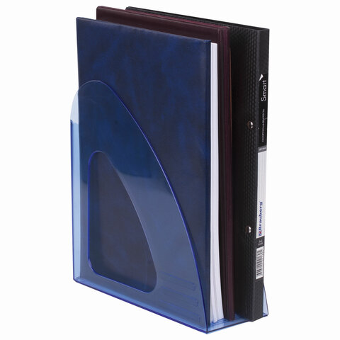 Лоток вертикальный для бумаг BRAUBERG "Delta", 240х90х240 мм, тонированный синий, 237245