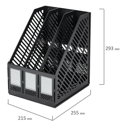Лоток вертикальный для бумаг BRAUBERG "Office-Expert", 215 мм, 3 отделения, сборный, черный, 238017
