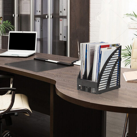 Лёгкий и прочный сетчатый вертикальный лоток STAFF предназначен для хранения и сортировки документов и папок. Трехсекционный.