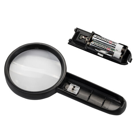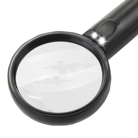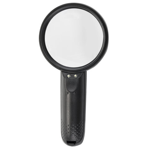 Лупа просмотровая BRAUBERG, С ПОДСВЕТКОЙ, диаметр 75 мм, увеличение 3, корпус черный, 454130