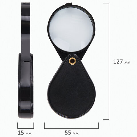 Лупа просмотровая BRAUBERG, складная, диаметр 50 мм, увеличение 6, 451798