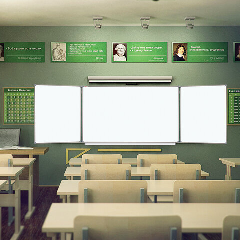 Трехэлементная настенная магнитно-маркерная доска STAFF идеально подходит для использования в любых учебных учреждениях.