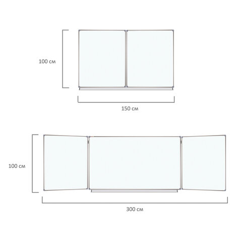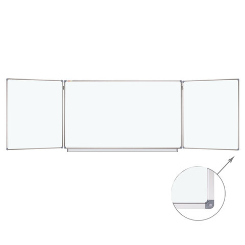 Доска магнитно-маркерная 3-х элементная 100х150/300 см, 5 рабочих поверхностей, белая, STAFF, 238010