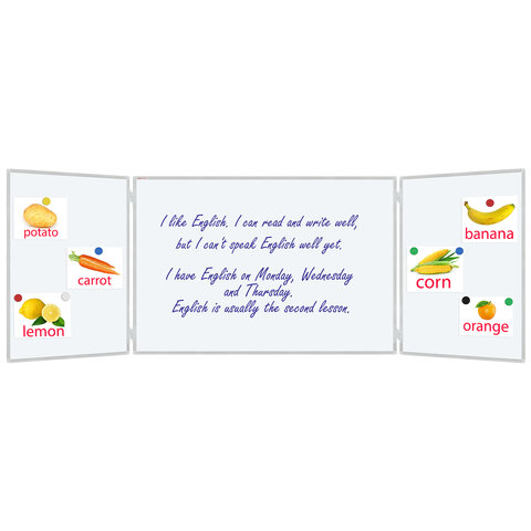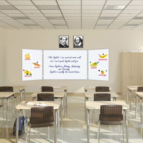 Трехэлементная настенная магнитно-маркерная доска BRAUBERG идеально подойдет для проведения совещаний, тренингов, презентаций и уроков в учебных, заведениях, офисах и других организациях.