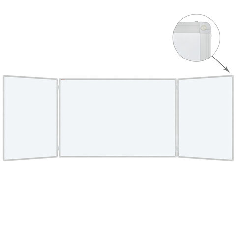 Доска магнитно-маркерная 3-элементная, 100х150/300 см, Польша, Гарантия 10 ЛЕТ, белая, BRAUBERG, 238035