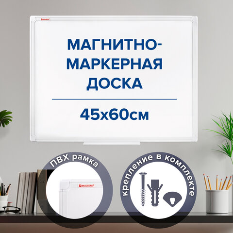 Доска магнитно-маркерная 45х60 см, ПВХ-рамка, BRAUBERG "Standard", 237560