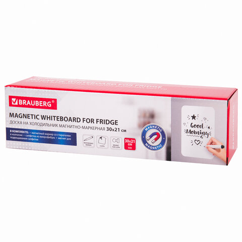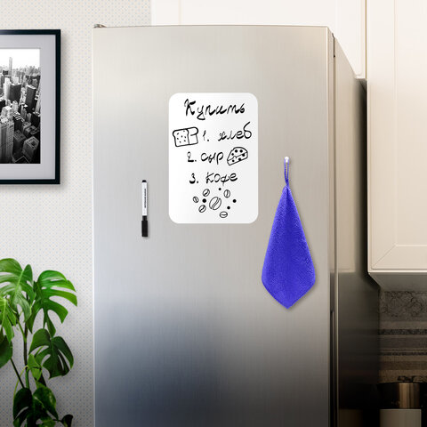 Доска на холодильник магнитно-маркерная 30х21 см с маркером, магнитом и салфеткой, BRAUBERG, 237846
