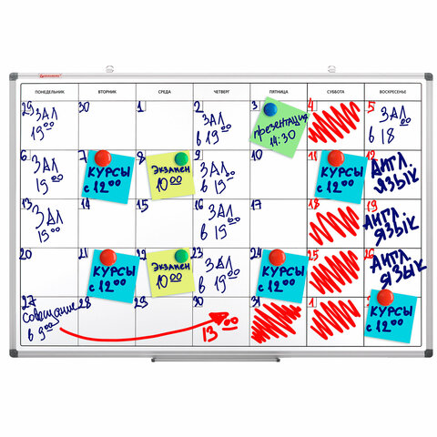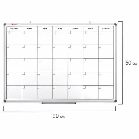 Доска-планинг НА МЕСЯЦ магнитно-маркерная 60х90 см, алюминиевая рамка, BRAUBERG "Extra", 237564