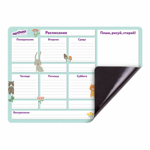 Планинг на холодильник магнитный РАСПИСАНИЕ 42х30 см, с маркером и салфеткой, ЮНЛАНДИЯ, 237851