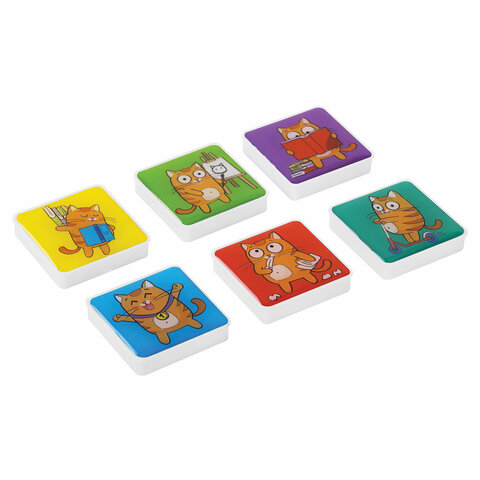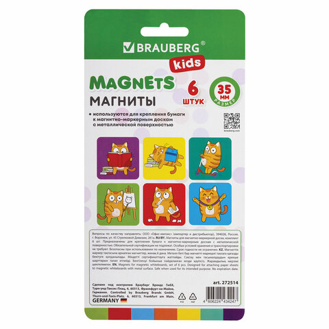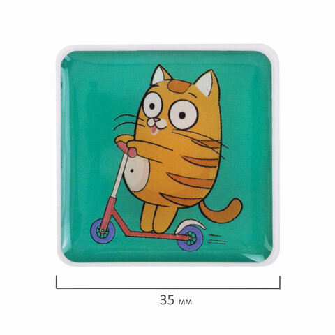 Магниты квадратные стеклянные 35 мм для досок магнитно-маркерных, НАБОР 6 шт., "Кот-энтузиаст" BRAUBERG KIDS, блистер, 272514
