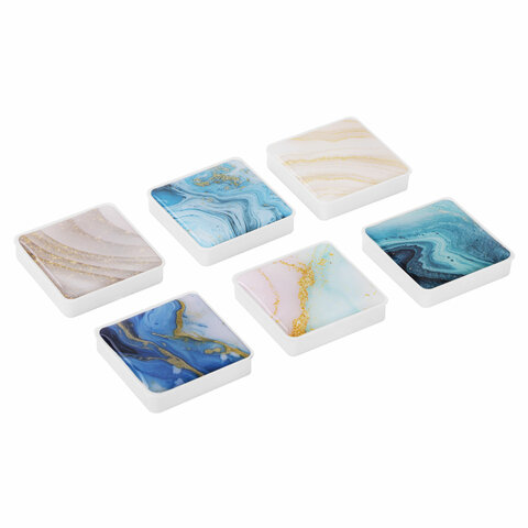Магниты квадратные стеклянные 35 мм для досок магнитно-маркерных, НАБОР 6 шт., "Мрамор", BRAUBERG Glass, блистер, 272512