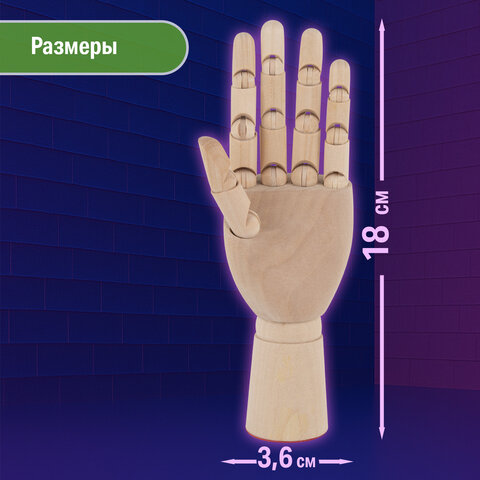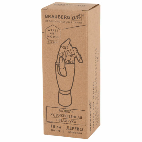 Манекен художественный "РУКА" левая, высота 18 см, дерево, BRAUBERG ART CLASSIC, 192516