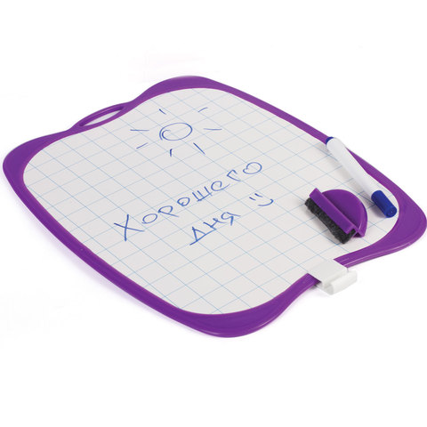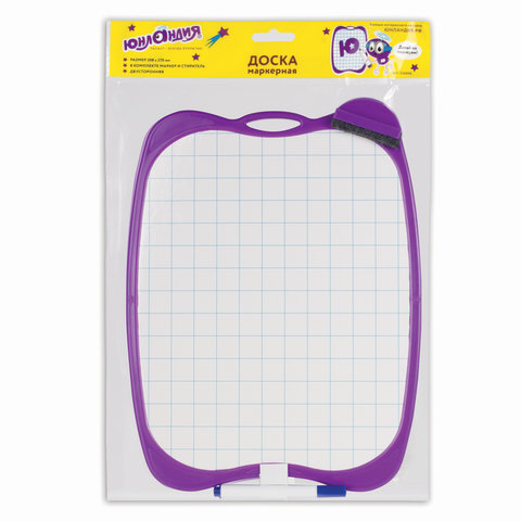 Доска двусторонняя маркерная A4 190х270 мм, БЕЛАЯ/КЛЕТКА, с маркером и стирателем, ЮНЛАНДИЯ, 236898